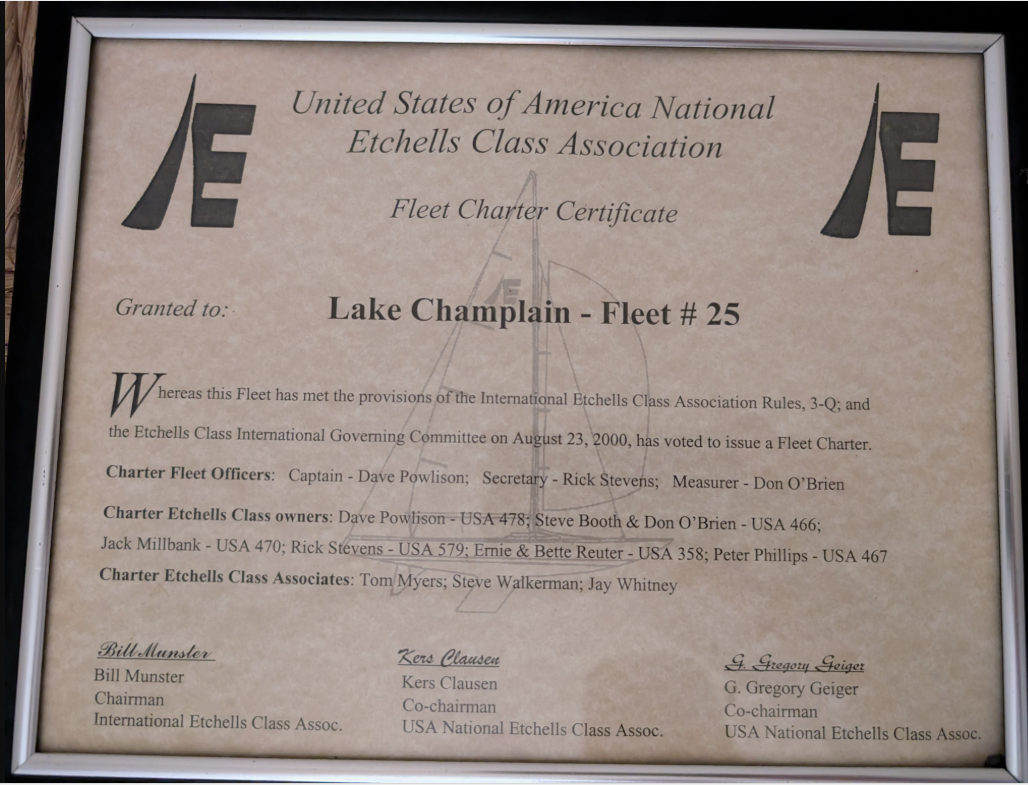 In addition to the regular LCYC race schedule, the Fleet has hosted regional Etchells regattas from time to time, including the 2007 Etchells New England Championship which attracted 30+ boats from across the eastern US and Canada. In September 2024, with the completion of the new launching facility at the Lake Champlain Community Sailing Center, the fleet restarted an annual regatta. Some Fleet members participate in regattas off the lake including various events in northeastern North America, the Etchells NA Championships, the Etchells Worlds and the Jaguar Cup Series in Miami each winter.