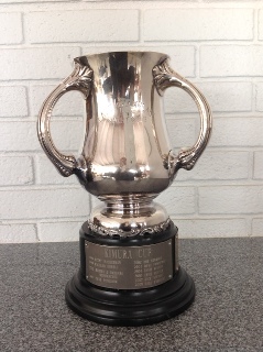 The history of this three-handled loving-cup trophy is not known. The trophy was in the LCYC archives and was activated as the Kimura Cup in recognition of John's one-design efforts. The purpose of this traveling trophy is to publicly recognize the person or persons that make a significant contribution to the advancement of one-design racing at LCYC.